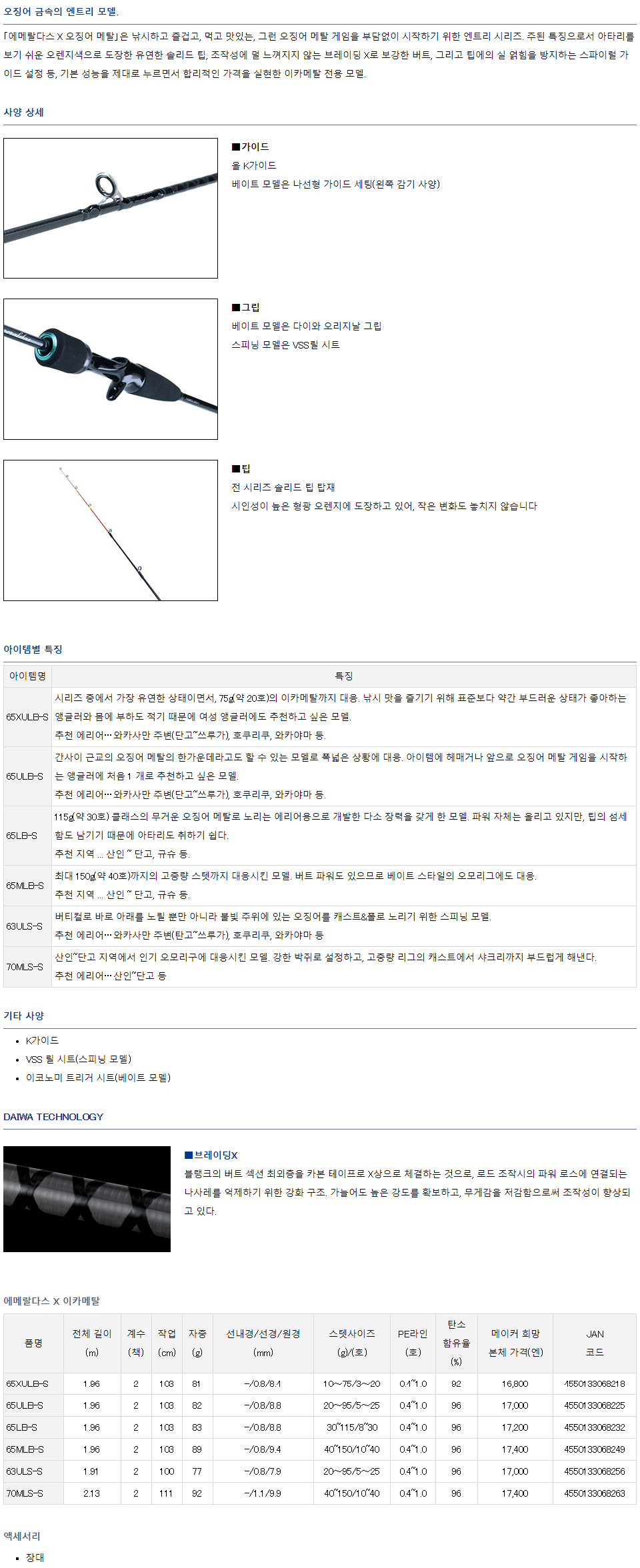 다이와 에메랄다스 X 이카메탈 루어대 [한국다이와]