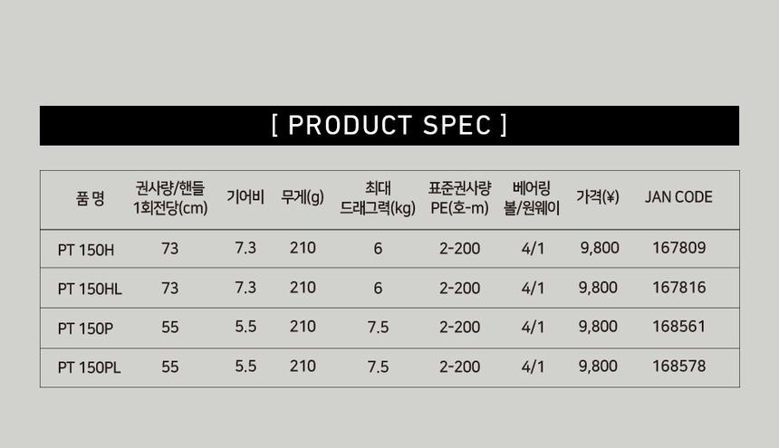 다이와 PT 150 블랙 솔트라이트 게임 베이트릴 한국다이와