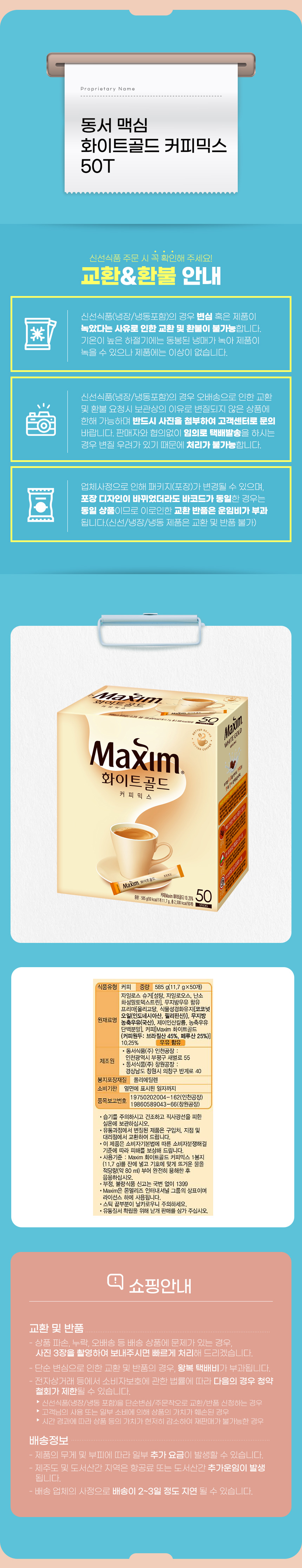 동서 맥심 화이트골드 커피믹스 50T