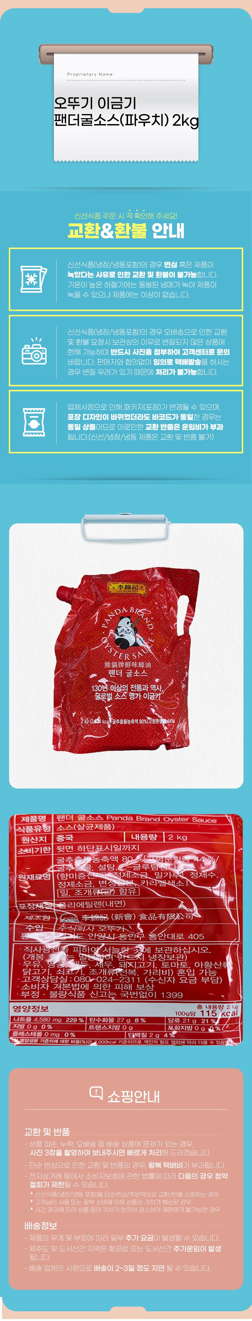 오뚜기 이금기 팬더굴소스(파우치) 2kg