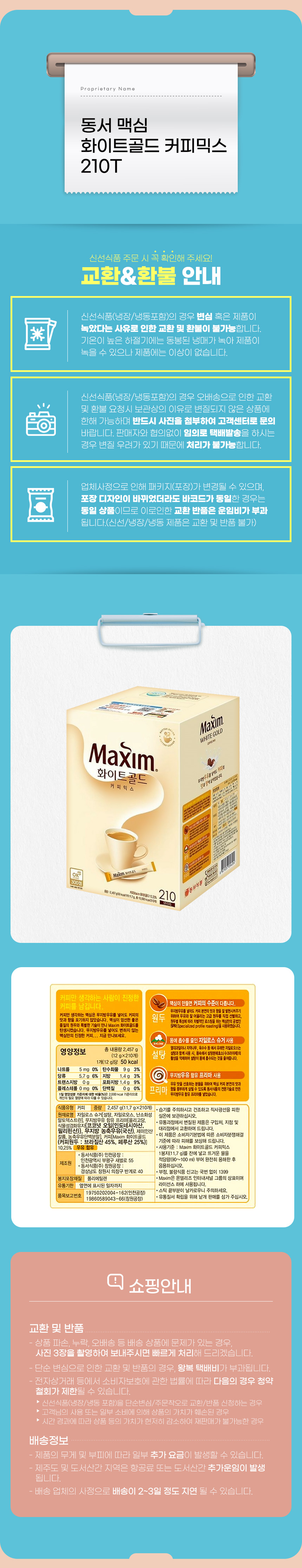 동서 맥심 화이트골드 커피믹스 210T