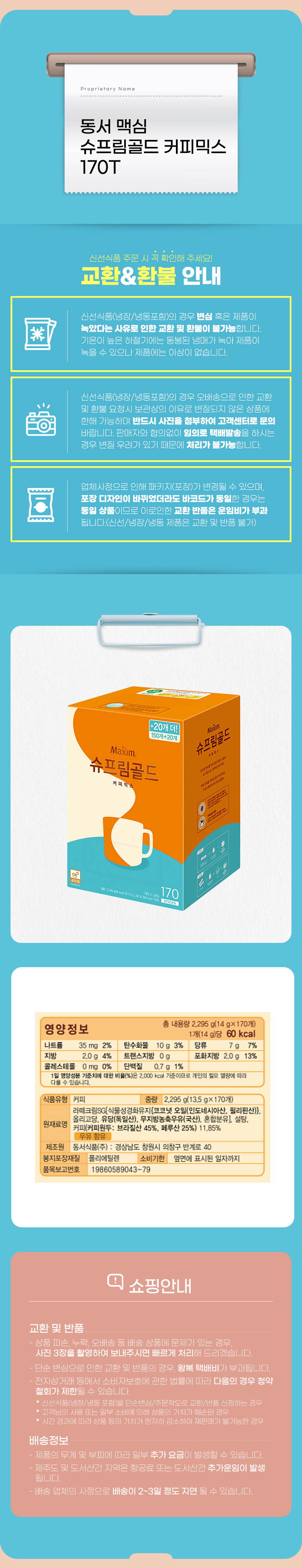 동서 맥심 슈프림골드 커피믹스 170T
