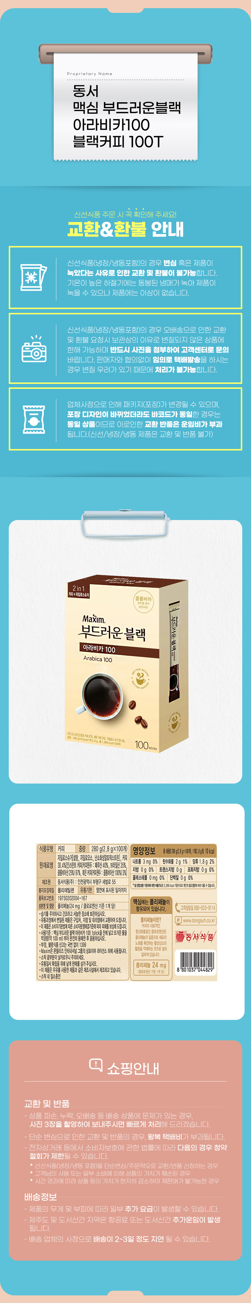 동서 맥심 부드러운블랙 아라비카100 블랙커피 100T
