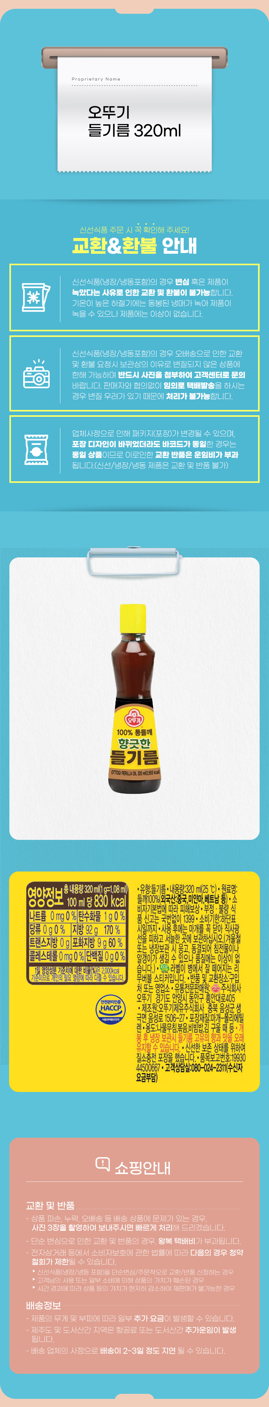 오뚜기들기름 320ml