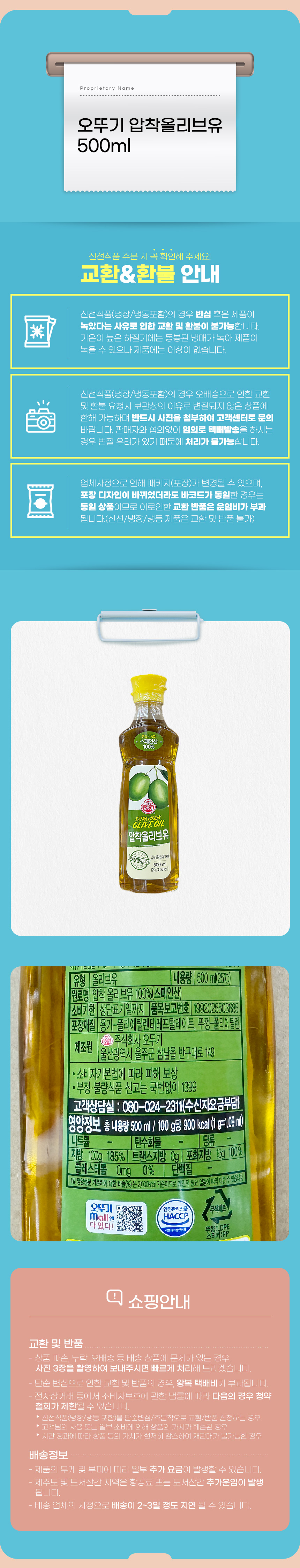 오뚜기 압착올리브유 500ml
